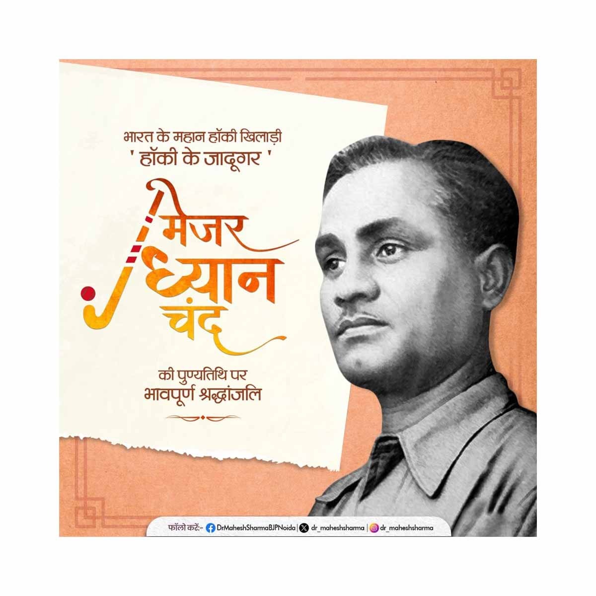 तीन बार के ओलंपिक स्वर्ण पदक विजेता और भारतीय हॉकी को वैश्विक गौरव दिलाने वाले महान खिलाड़ी मेजर ध्यानचंद जी की पुण्यतिथि पर उन्हें सादर नमन।