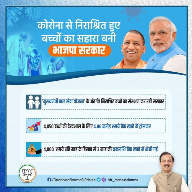 कोरोना से निराश्रित हुए बच्चों का सहारा बनी भाजपा सरकार