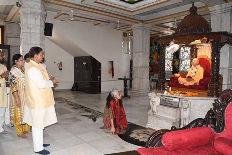 नोएडा इस्कॉन मंदिर में दर्शन एवं विश्व कल्याण की प्रार्थना