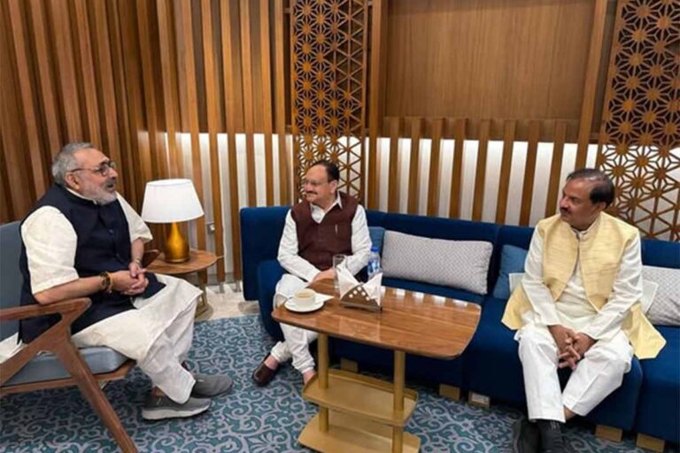 दिल्ली एयरपोर्ट पर मा. जे.पी. नड्डा जी एवं मा. गिरिराज सिंह जी से शिष्टाचार भेंट