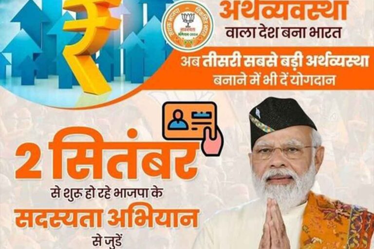 2 सितंबर से शुरू हो रहा भाजपा का नया सदस्यता अभियान। 88 00 00 2024 पर मिस्ड कॉल कर भाजपा का सदस्य बनें।